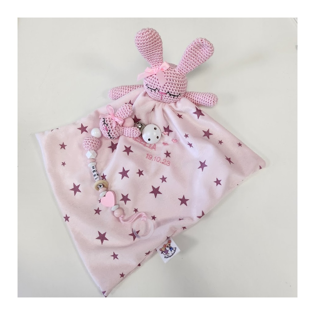 Beebiroosa jänkuga roosad tähed kaisulapp ja nimeline lutikett