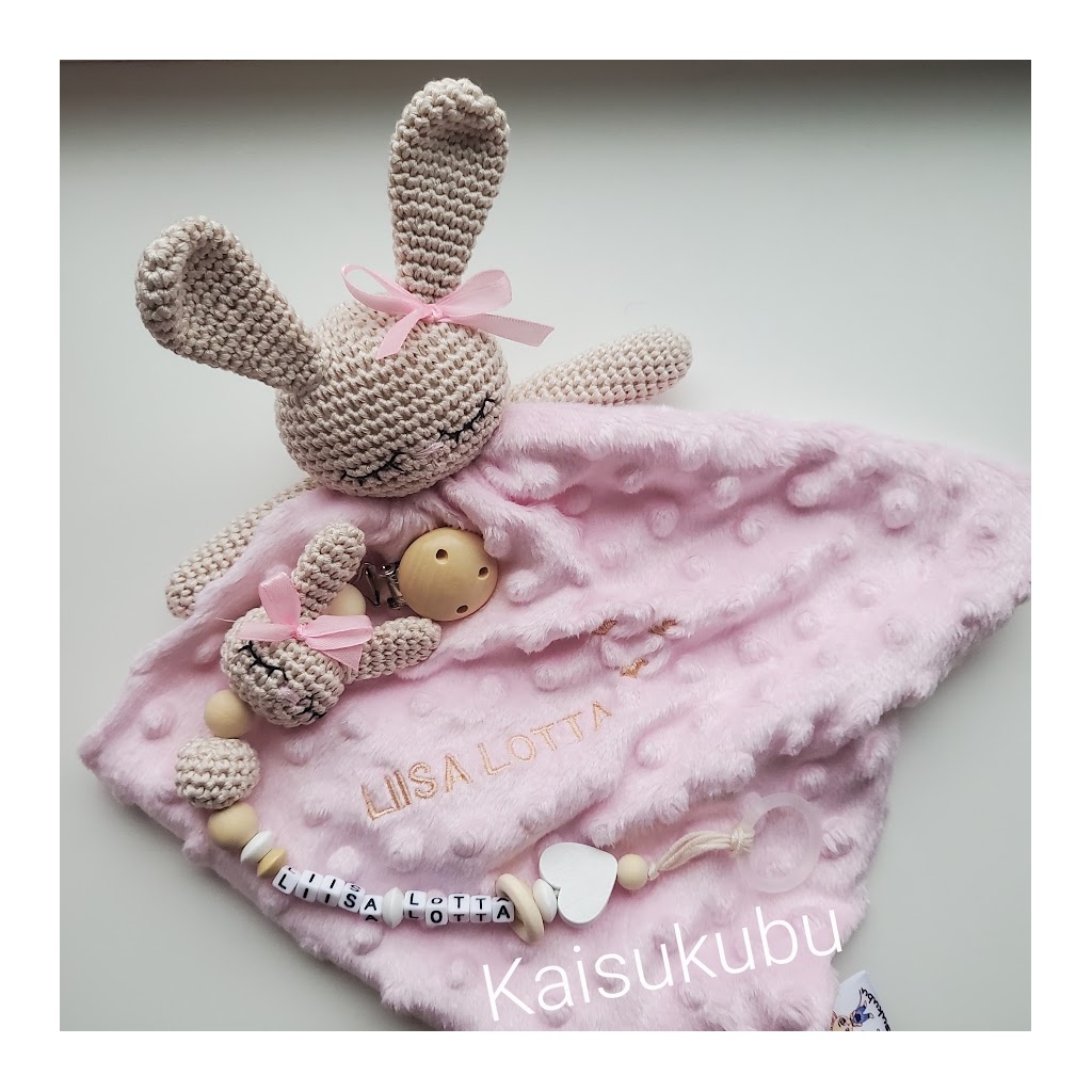 Lutikett ja kaisulapp on valmistatud käsitööna kvaliteetsest puuvillasest lõngast, mis on pehme, vastupidav ja beebile nahasõbralik. Kaisulapp on mõnusast minky-fliisist, pakkudes beebile lisamugavust ja turvatunnet.