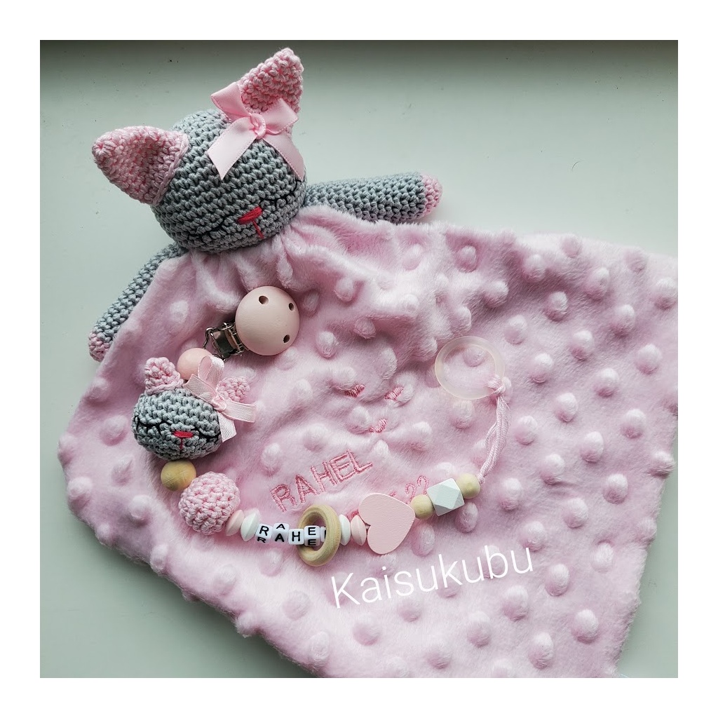 Lutikett ja kaisulapp on valmistatud käsitööna kvaliteetsest puuvillasest lõngast, mis on pehme, vastupidav ja beebile nahasõbralik. Kaisulapp on mõnusast minky-fliisist, pakkudes beebile lisamugavust ja turvatunnet.
