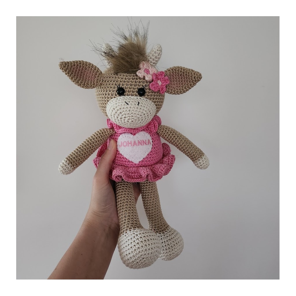 See vahva härja kaisukas on heegeldatud käsitsi 100% puuvillasest lõngast ja täidetud pehme kerakiuga, mis teeb temast truu kaisuka igaks päevaks ja ööks. Hoolikalt valmistatud ja mõeldud kestma – just nagu üks õige härg.
