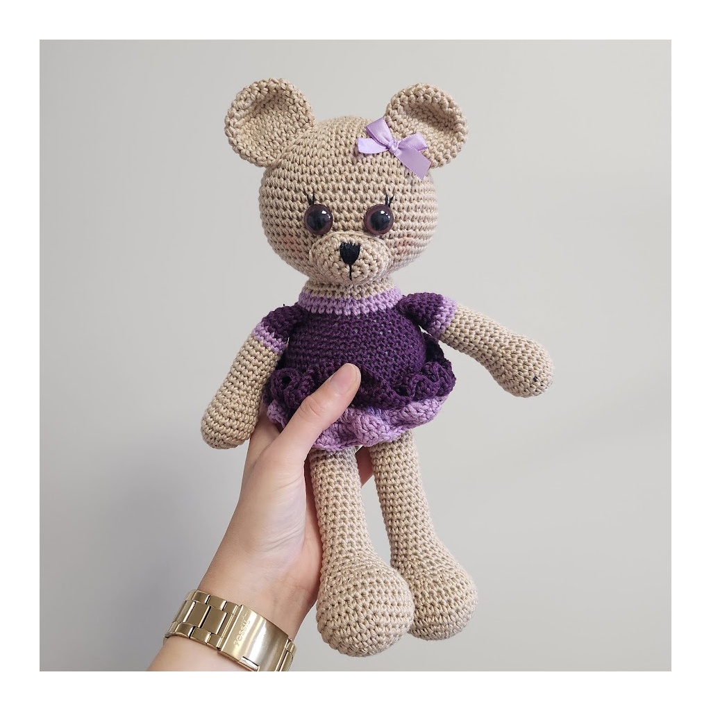 Käsitsi heegeldatud mõmm on valmistatud 100% puuvillasest lõngast ja täidetud pehme kerakiuga. Mõmm on beebisõbralik, masinpestav (soovitatav õrnpesuga) ja ideaalne kaisutamiseks juba esimestest elukuudest.